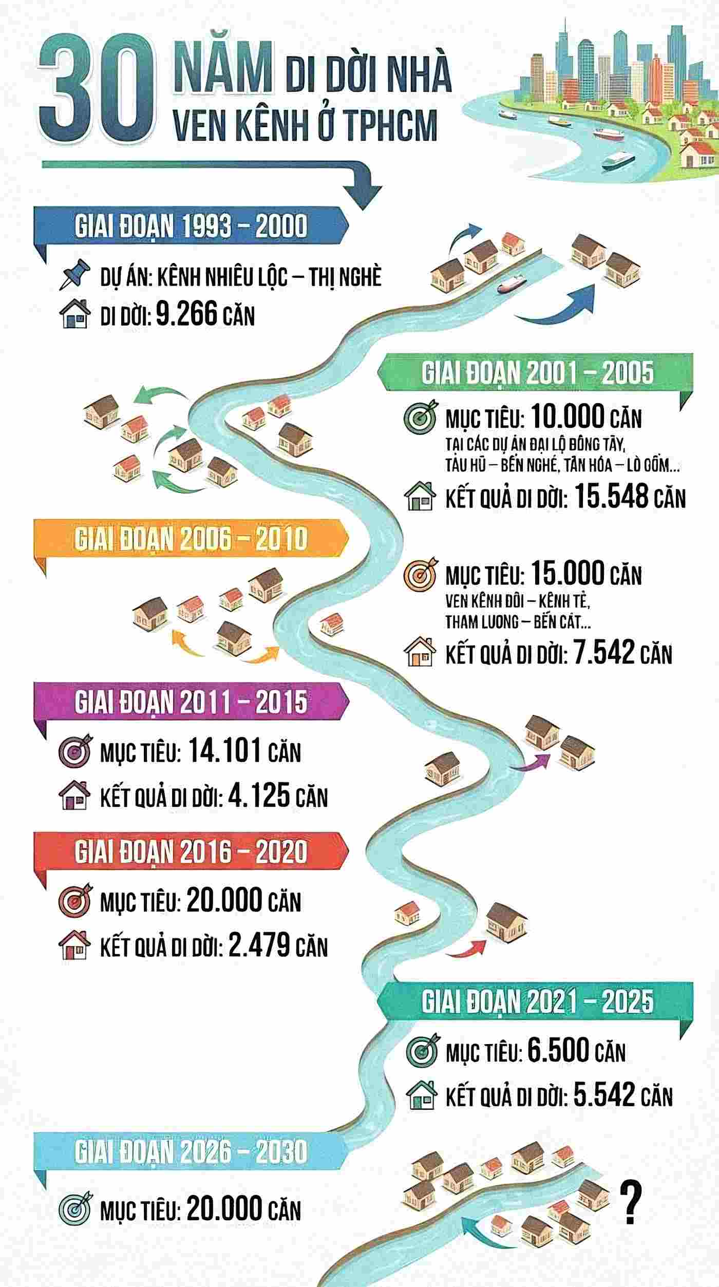 현재 호치민시에는 398개의 강, 운하, 도랑이 아직 개조되지 않았으며, 약 39,600채의 주택이 이전해야 합니다.