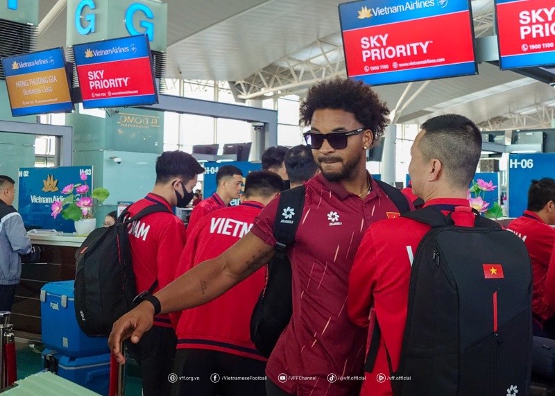 11월 15일 아침 베트남 대표팀은 2027 아시안컵 예선 2차전에서 개최국과의 경기를 위해 수도 비엔티안(라오스)행 비행기를 준비하기 위해 푸토를 떠나 노이바이 공항으로 향했습니다.