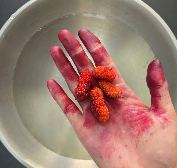 초여름은 많은 주부들이 뽕나무 열매를 사서 갈증 해소 음료로 담가 마시는 시기입니다. 그러나 예비 처리 과정에서 익은 뽕나무 열매의 짙은 보라색이 피부와 손톱 사이에 달라붙게 됩니다.