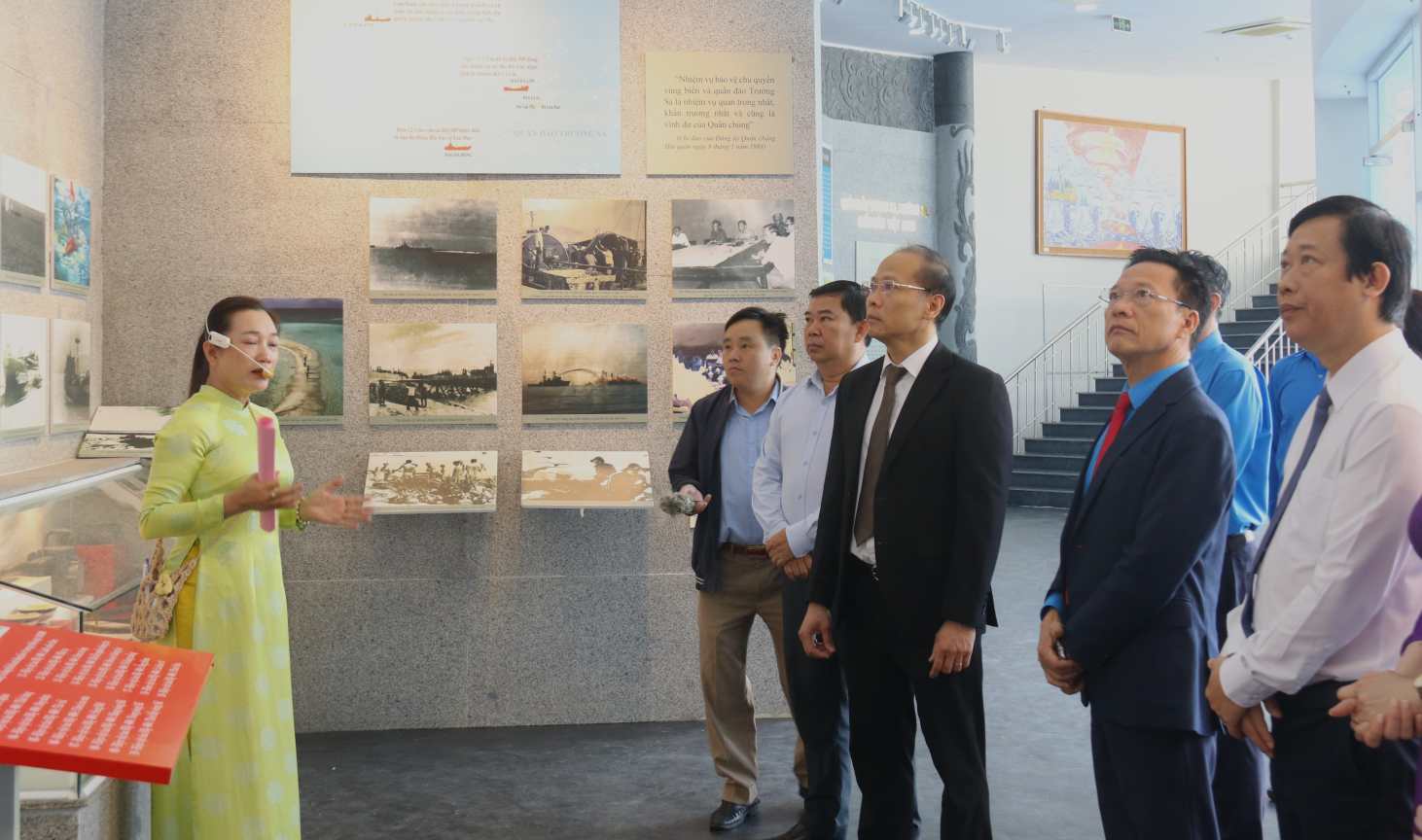 대표단은 또한 64명의 간부 및 군인을 기리는 묘지에서 향을 피우고 쯔엉사 특별구역에서 베트남의 해양 및 섬 주권 건설 및 보호 과정에 대한 역사적 이정표를 되새기기 위해 기념 구역의 지하 박물관을 방문했습니다.