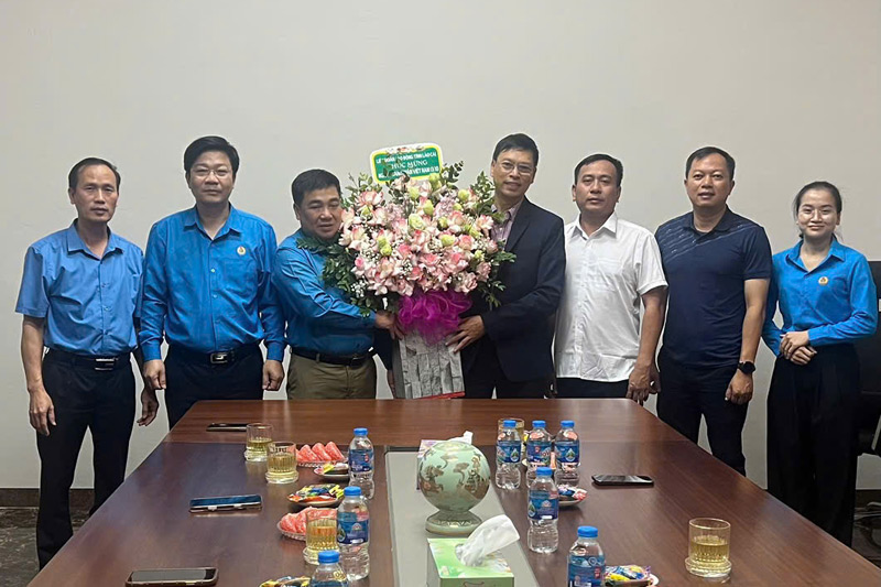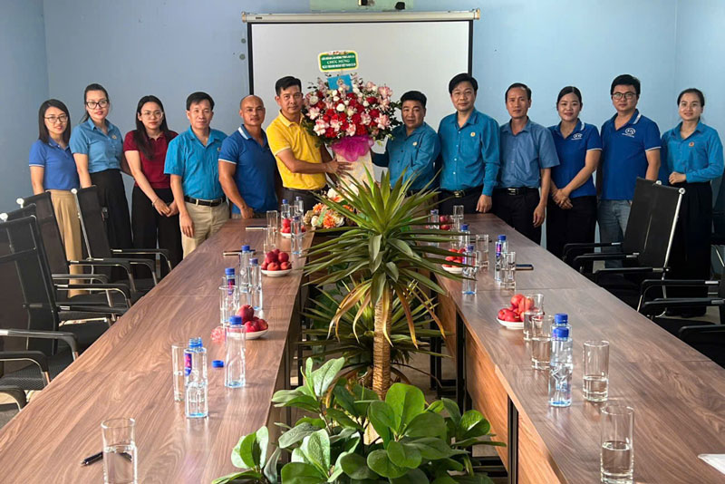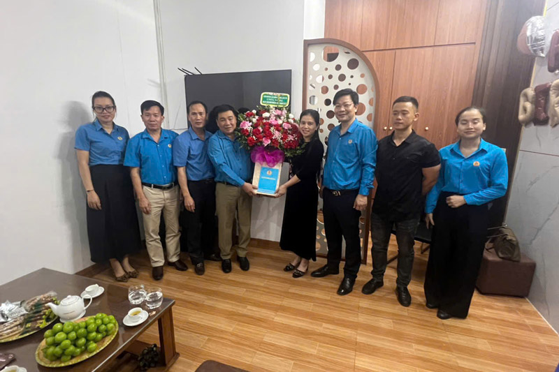 베트남 기업가의 날(10월 13일)을 기념하여 라오까이성 노동 연맹과 산업 단지 - 경제 구역 노동조합 위원회는 지역 내 여러 산업 단지의 기업과 노동자를 격려하기 위해 왕궁을 방문하여 꽃을 증정했습니다.