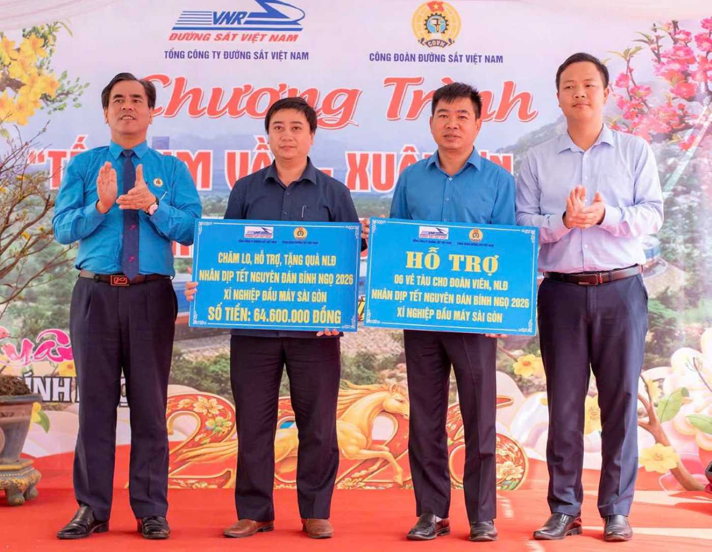 프로그램에서 베트남 철도 노동조합 위원장은 디에우찌 역 지역 노동자들을 위한 공동 설날 조직을 지원하기 위해 4억 7천만 동 이상의 자금을 전달했습니다. 동시에 섣달 그날 밤에 일하는 11개 단체와 이 지역에서 근무하는 어려운 환경에 처한 13명의 조합원 및 노동자에게 설날 선물을 전달했습니다.