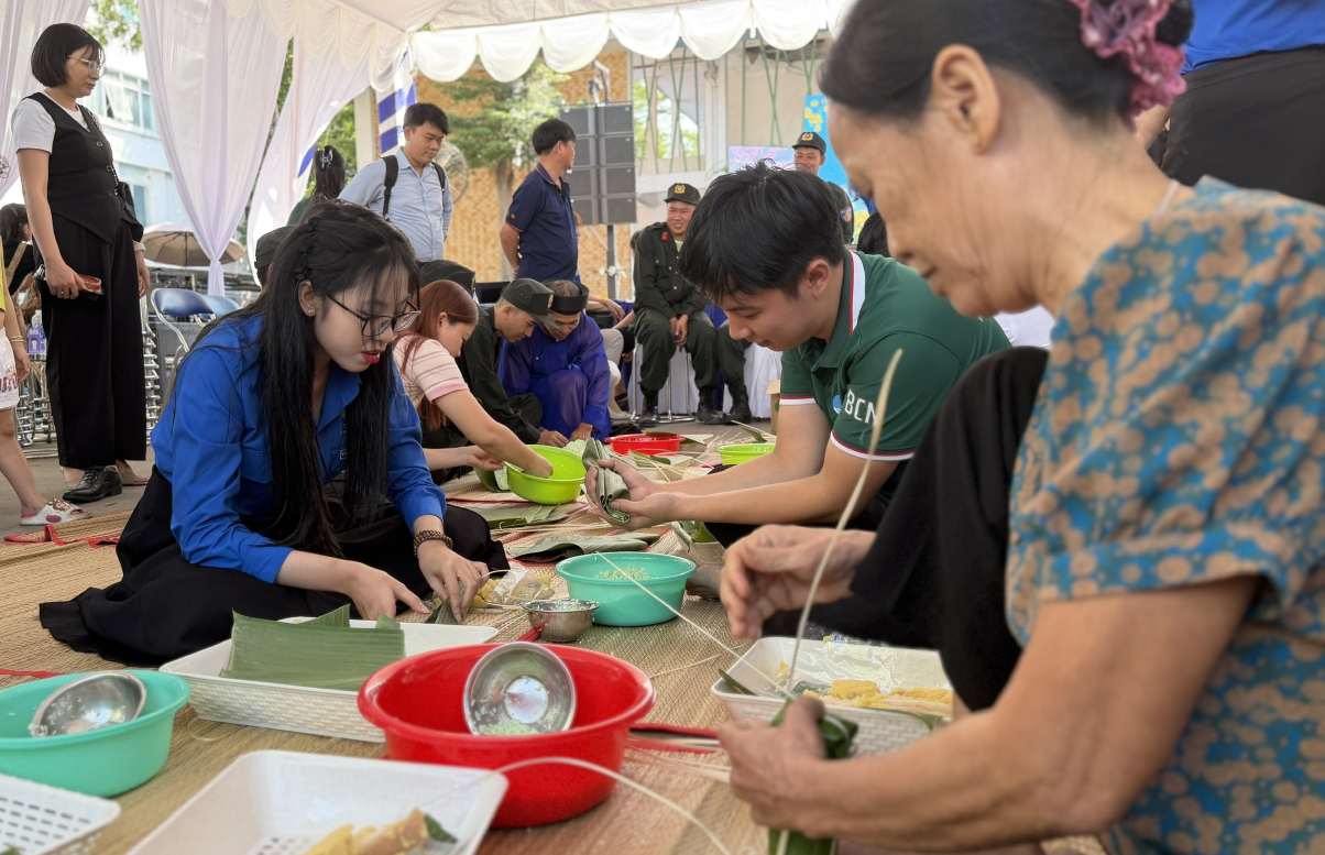 주목할 만한 점은 프로그램에 참여할 때 청년 노동자들이 함께 모여 설날을 맞이하는 반, 반뗏을 포장할 수 있다는 것입니다.