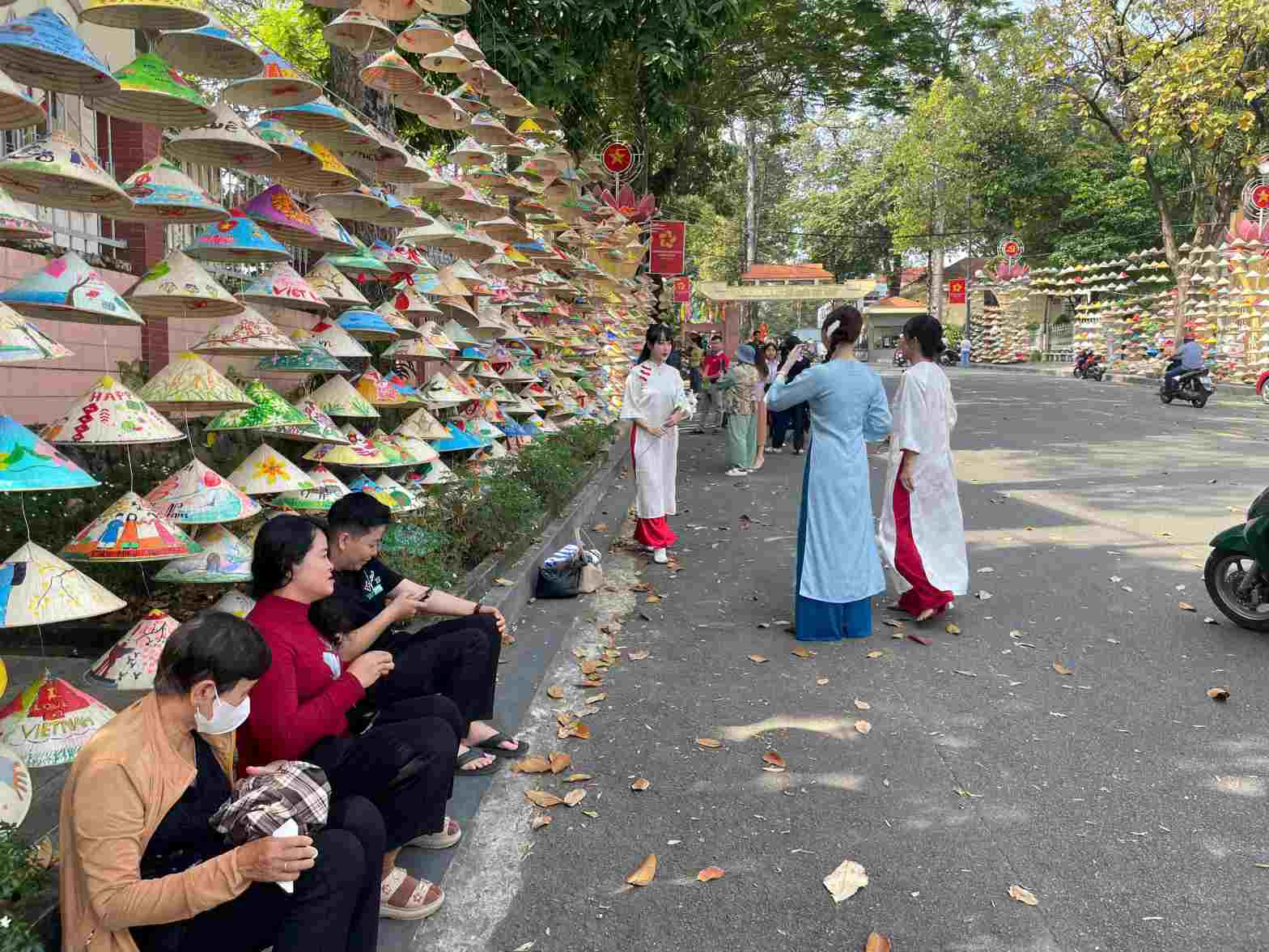 브리지 기자와의 인터뷰에서 Thu Dau Mot 구 문화 정보 및 스포츠 센터 소장 Vuong Duc Hieu 씨는 꽝쭝 거리에 전시하기 위해 약 2 600개의 모자가 사용되었다고 말했습니다. 모자 거리 공사는 12월 23일에 공식적으로 완료될 예정입니다.