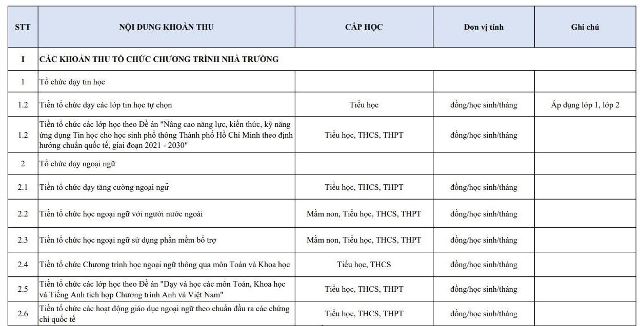 이에 따라 결의안 18/2025/NQ-HĐND는 학교가 학교 프로그램 또는 외부 파트너와의 연계 교육 프로그램이라고도 하는 프로그램을 시행하기 위해 징수할 수 있는 금액을 명확히 규정합니다. 정보 기술 교육 조직; 외국어 강화 교육 조직 비용; STEM 교육 조직...