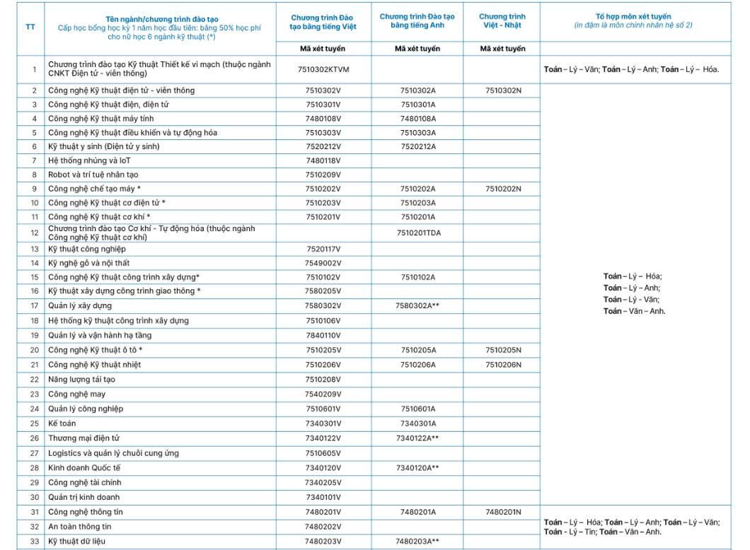 호치민시 공과대학교는 2025년 유사한 방법 외에도 2026년에 고등학교 시험 점수와 고등학교 성적 증명서 점수를 결합하여 입학하는 방법을 추가로 사용할 계획이며, 여기에는 다음이 포함됩니다.