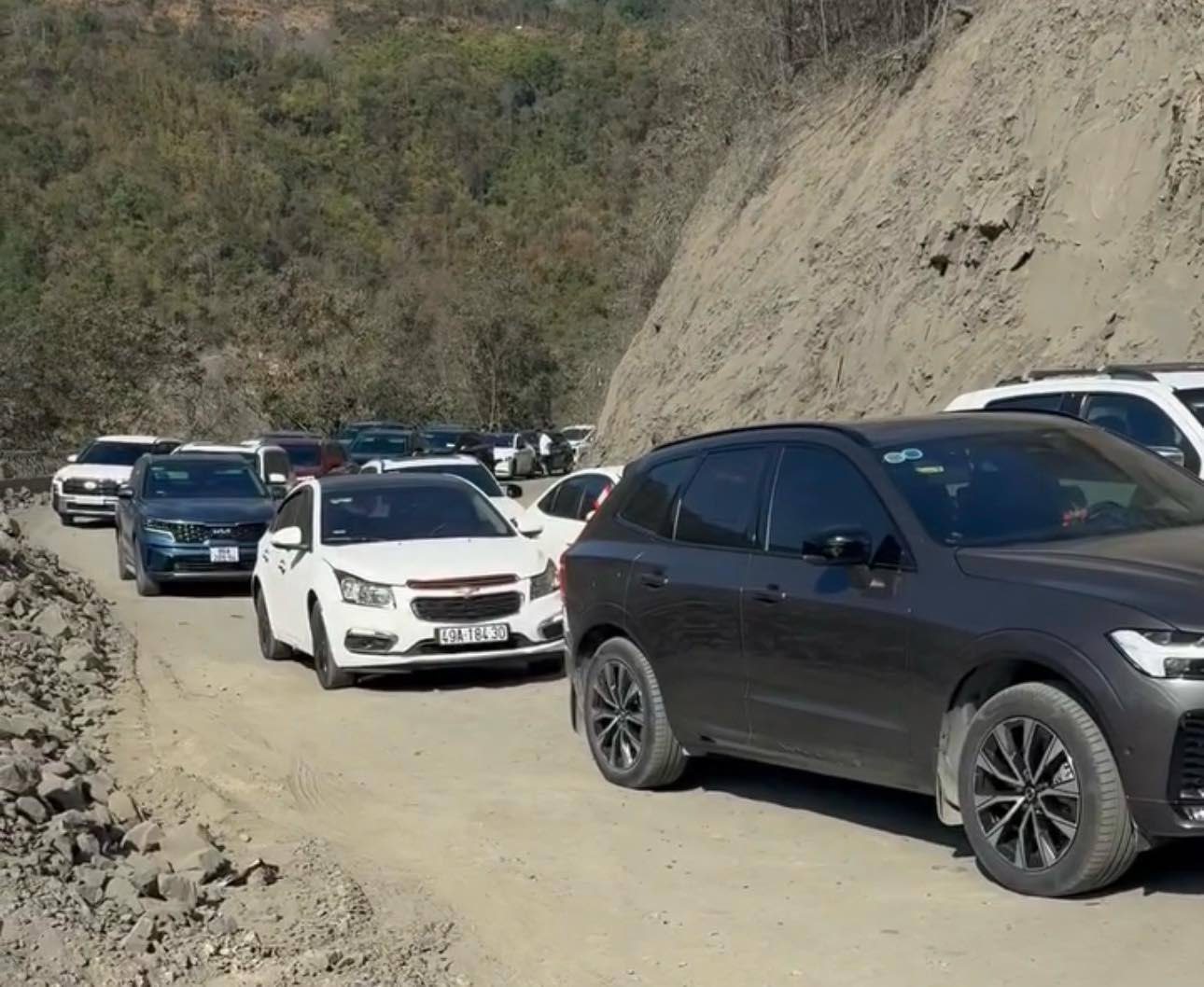 2월 15일 오후부터 같은 날 저녁까지 국도 28B - 다이닌 고개 정상 구간(람동성 판선사)에서 교통 체증이 발생하여 자동차가 길게 줄지어 서 있었습니다.