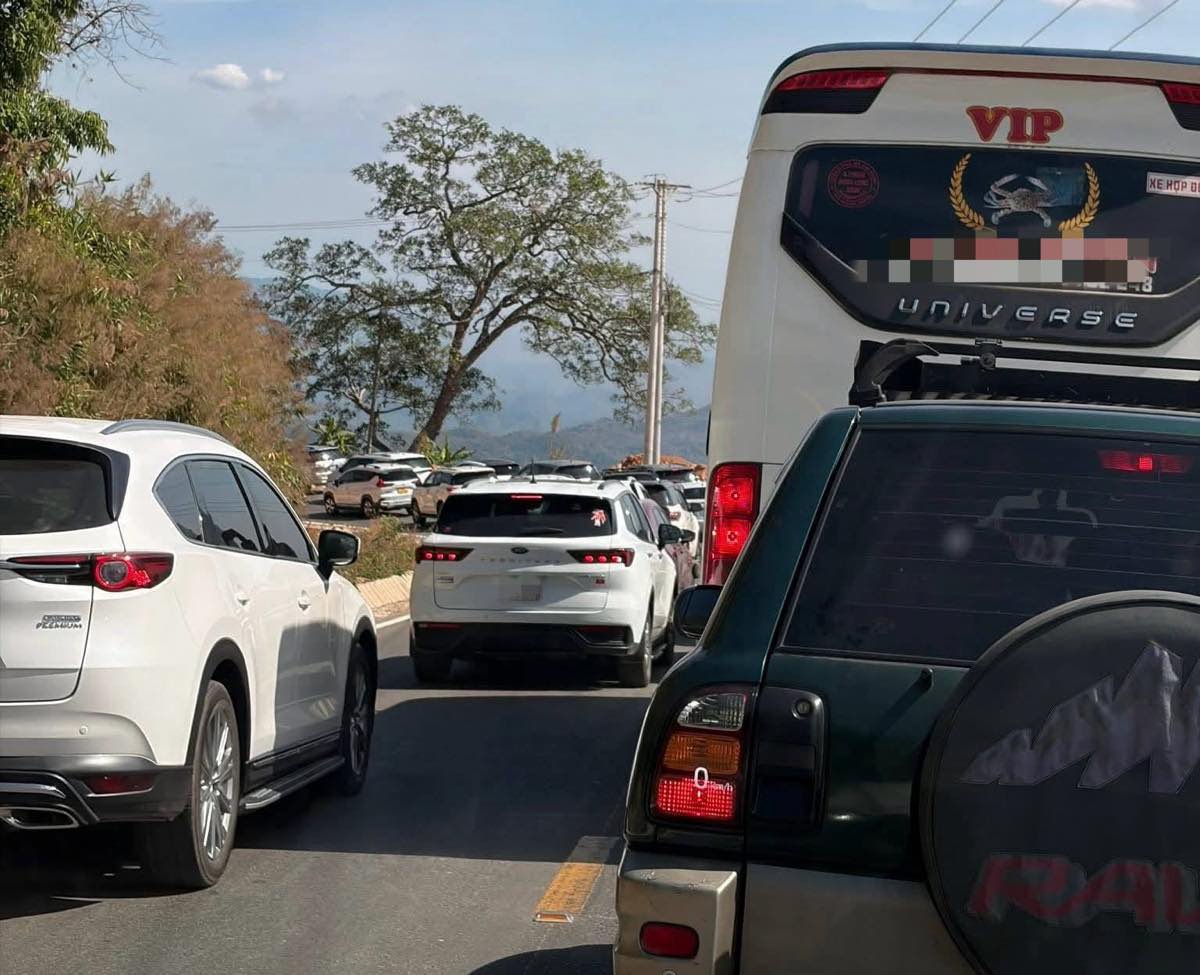 고개 정상에 사는 응우옌 꽁 씨는 정오부터 정체가 발생하여 몇 시간 동안 지속되었고, 차량 흐름이 느리고 좁은 도로 구간을 따라 줄지어 있었다고 말했습니다.