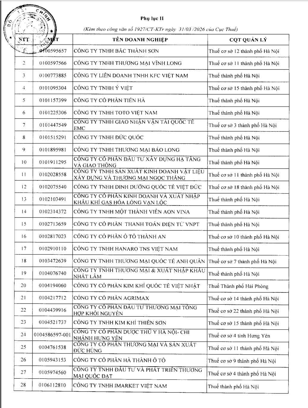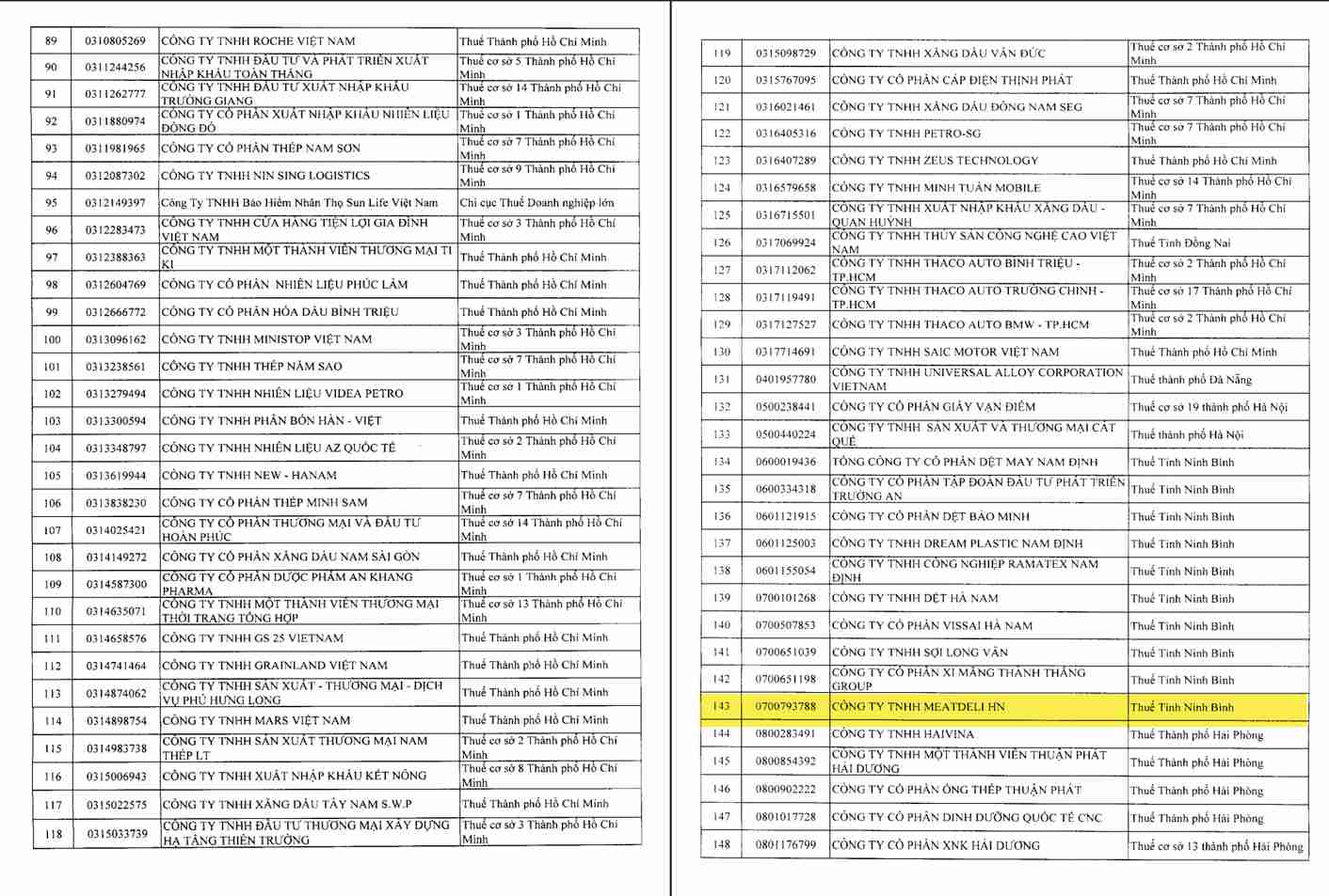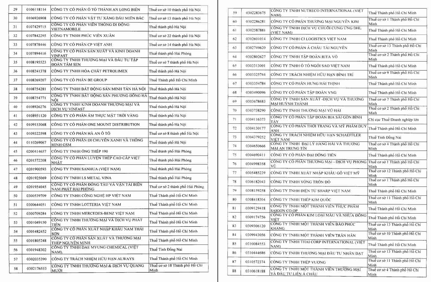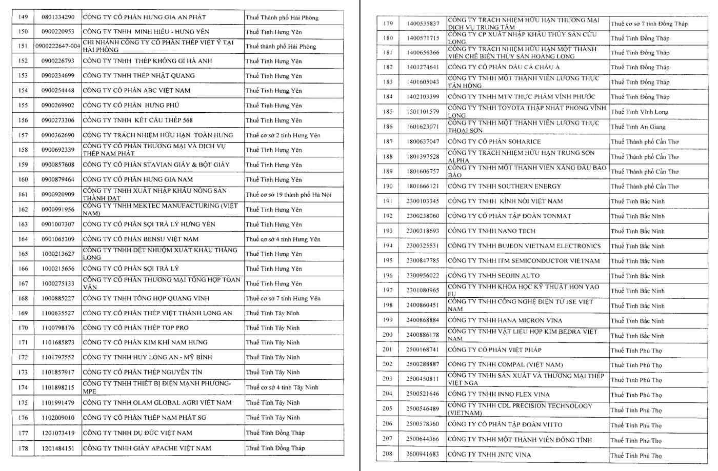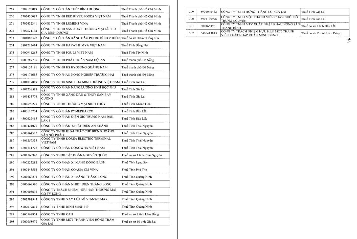세무국은 상품 및 서비스 판매 매출액이 1조 동 이상이지만 2023년과 2024년 2년 연속 손실을 발생시킨 일부 기업 목록을 검토 및 종합했으며, 첨부 목록에는 302개 기업이 포함되어 있습니다.