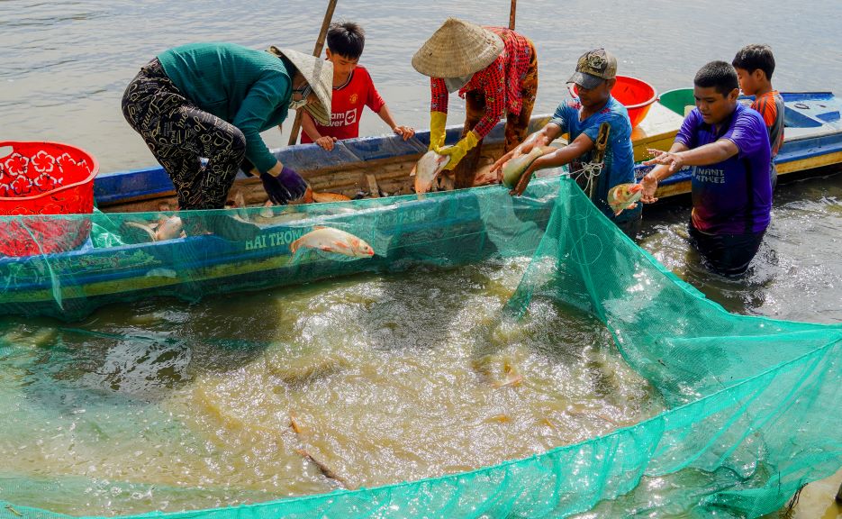My Tu 면(껀터시)에 거주하는 Tran Tan Dat 씨는 Co chi 5ha ruong ngai sau 4 thang nuoi huyen ong thu hoach khoang 5 tan ca tang thu nhap hang chuc trieu dong. 'Dat vung nay trung, lam lua Thu Dong thi lo. Nuoi ca trong ruong chi phi thap, chi can mua giong va luoi bao. Ca an rong reu tu nhien nen lon nhanh cuc it ton cong cham soc vay ong Dat chia se.