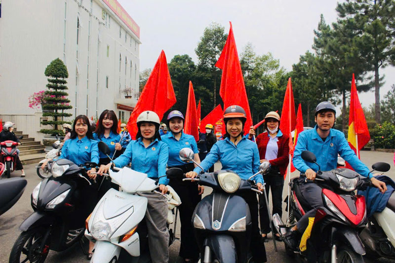 이에 따라 3월 13일, 깜드엉동 노동조합은 시각적 선전 프로그램에 호응하여 많은 노동조합원들의 참여를 유도했습니다.