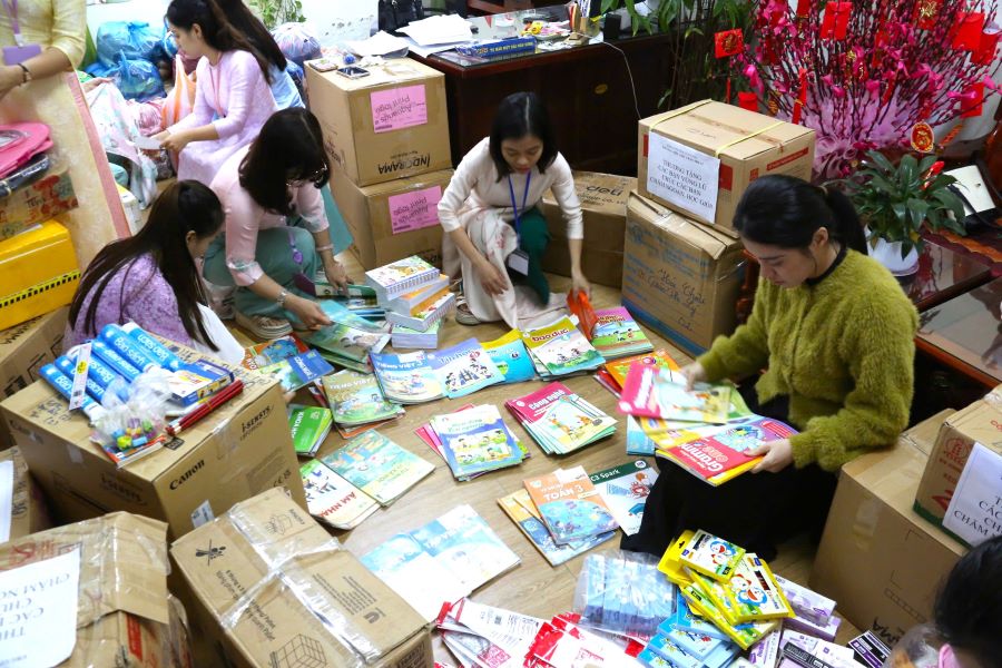 4일간의 운영 후 이 프로그램은 다낭 홍수 피해 지역 학생들의 요구에 맞는 1 200권 이상의 교과서(지식과 삶을 연결하는 세트)와 2 000개 이상의 다양한 유형의 학습 용품을 수집했습니다.