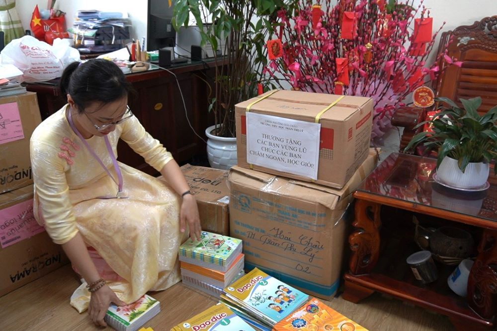 상부상조' 정신에 호응하여 쩐티리 초등학교(다낭시 하이쩌우동)는 홍수 피해 지역 학생들을 지원하기 위해 교과서와 학용품 기증 프로그램을 시작했습니다.