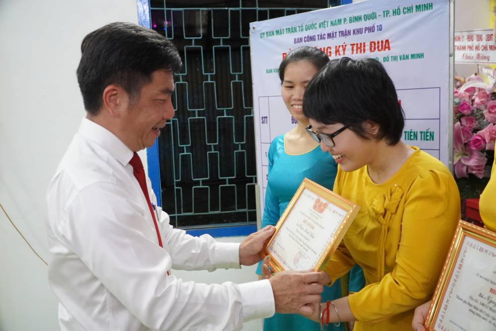 이번 기회에 10구역 조국전선 사업반 반장인 Vu Anh Dao 여사는 2025년 조국전선 사업 결과를 보고했습니다. Dao 여사는 Binh Quoi 구역이 함께 단결하고 노력하고 경쟁 운동 캠페인을 잘 수행하기 위해 협력했다고 말했습니다. 눈에 띄는 것은 사회 복지 사업이 세심하게 수행되었다는 것입니다. 구역은 5천만 동 상당의 찬 2 500인분으로 'Binh Quoi nghia tinh - Bua sang yeu thuong' 모델을 많이 시행했습니다.