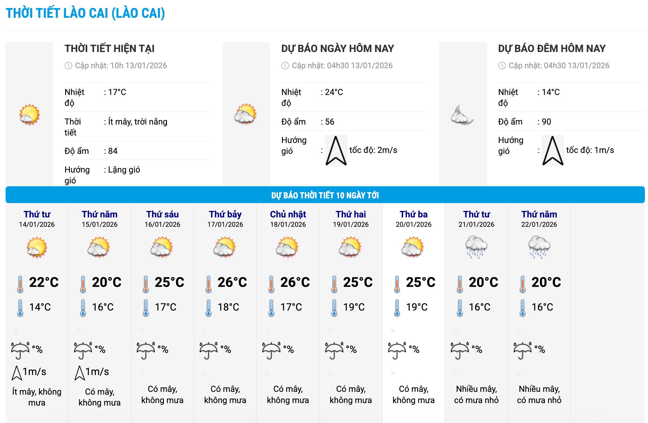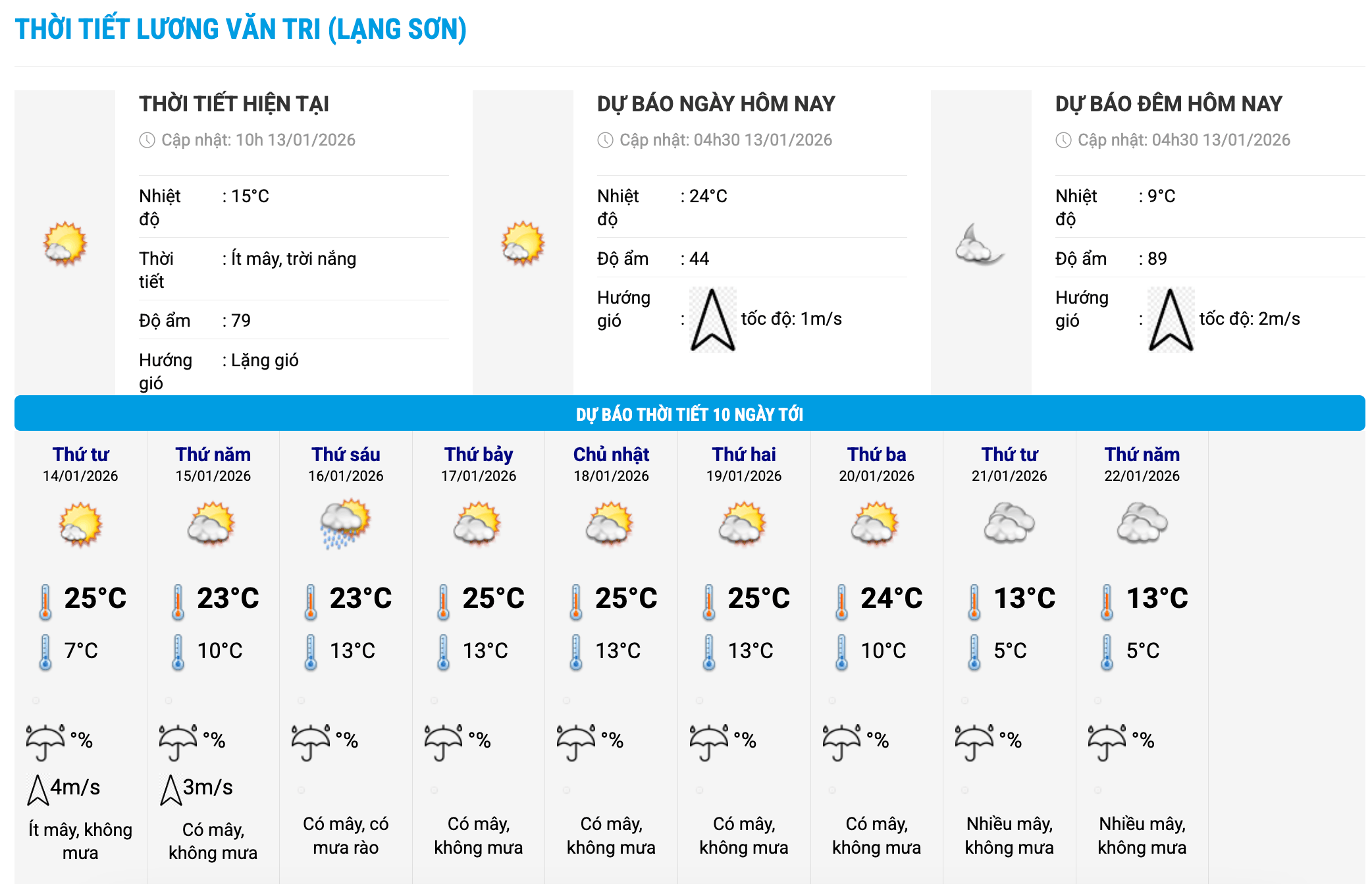 국립수문기상예보센터는 오늘 아침 1월 13일 일부 성 및 도시에서 측정한 실제 온도를 업데이트했습니다.