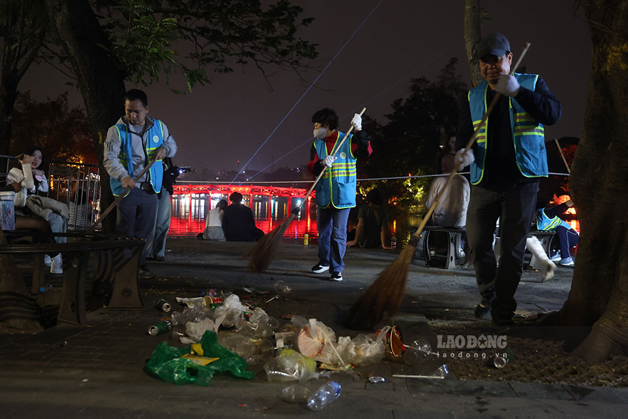 섣달 그날 이후 하노이는 밤새도록 쓰레기 "바다"를 치우기 위해 추가 인력을 동원합니다