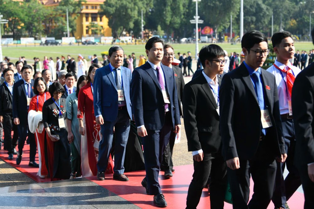 2025년 12월 26일 오후, 하노이에서 중앙당 위원, 국가 부주석 보 티 아잉 쑤언 - 중앙 경쟁 및 표창 위원회 제1 부위원장이 이끄는 제11차 전국 애국 경쟁 대회에 참가한 대표단은 화환을 놓고 호치민 주석 묘소를 참배했습니다.