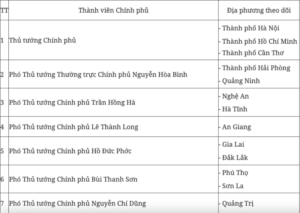 정부 구성원의 임무는 다음과 같습니다. 주기적으로(또는 필요한 경우) 적절한 형태로 지방과 협력하는 실무단을 조직하고 보고서를 총리에게 보고하여 보고서 내용 보고서 업무 결과 보고서를 작성하고 그 안에서 원인 어려움 걸림돌을 명확히 분석하고 생산 및 사업 촉진을 위한 해결책을 제안합니다. 보고서 수출입 보고서 보고서 인프라 구축 보고서 사회 주택 보고서 보고서 국가 목표 프로그램 및 2단계 지방 정부 시행.