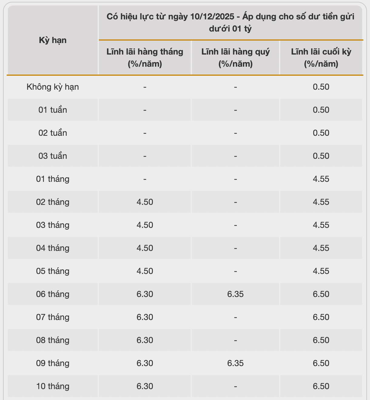 BacABank는 고객이 온라인으로 예금하고 만기 만기 이자를 받는 경우 6개월 만기 최고 금리를 연 6.5%로 고시합니다. BacABank는 고객이 18, 24, 36년 만기 이상 예금하는 경우 최고 금리를 6.7%로 고시합니다.