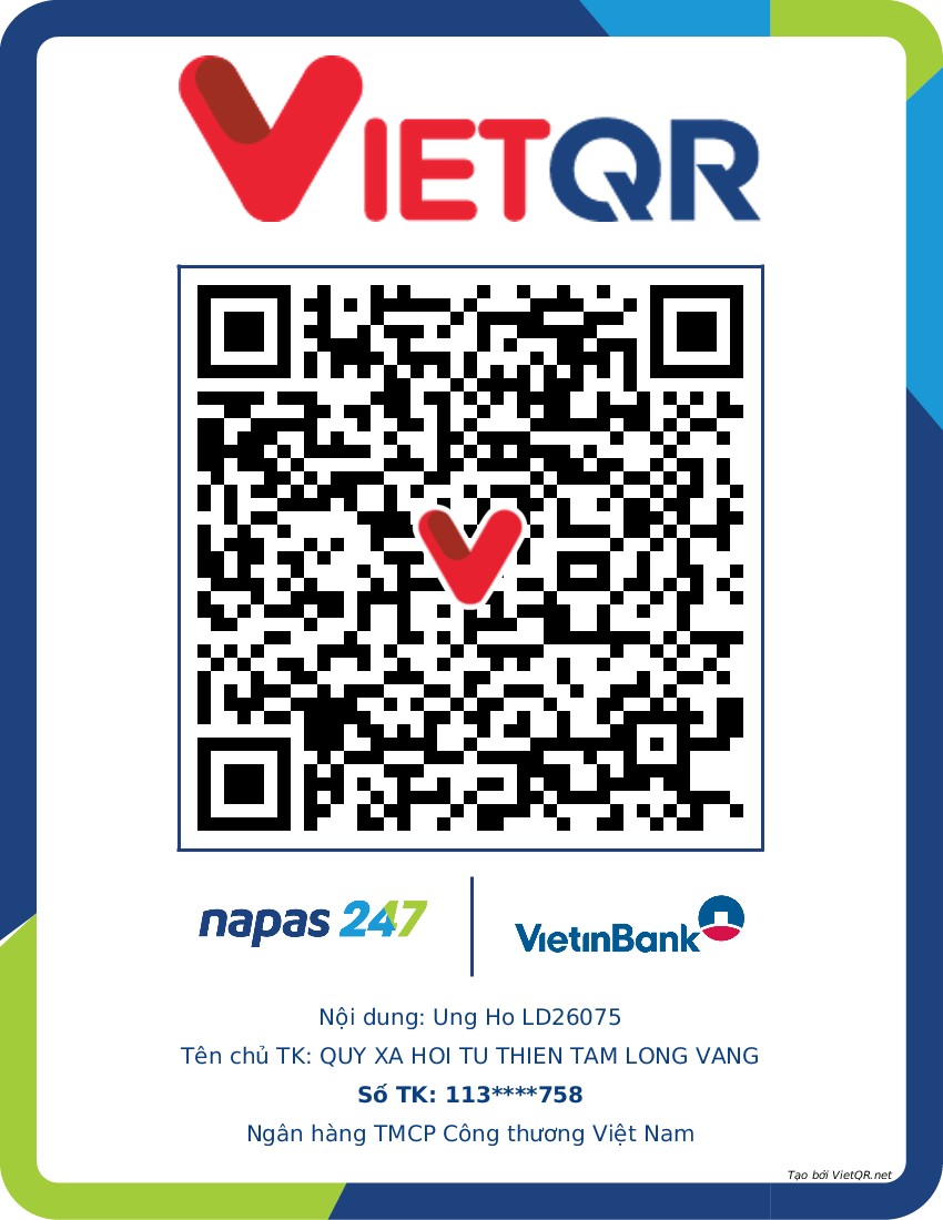 LD26075의 어려운 삶에 대한 모든 도움은 하노이 호안끼엠군 항보 51번지 황금 마음 자선 사회 기금으로 보내주십시오. 계좌 번호 (STK) 113000000758은 하노이 호안끼엠 지점 Vietinbank에 있습니다. STK: 0021000303088 - 하노이 지점 Vietcombank에 있습니다. STK: 12410001122556 - 호안끼엠 지점 BIDV에 있습니다.
