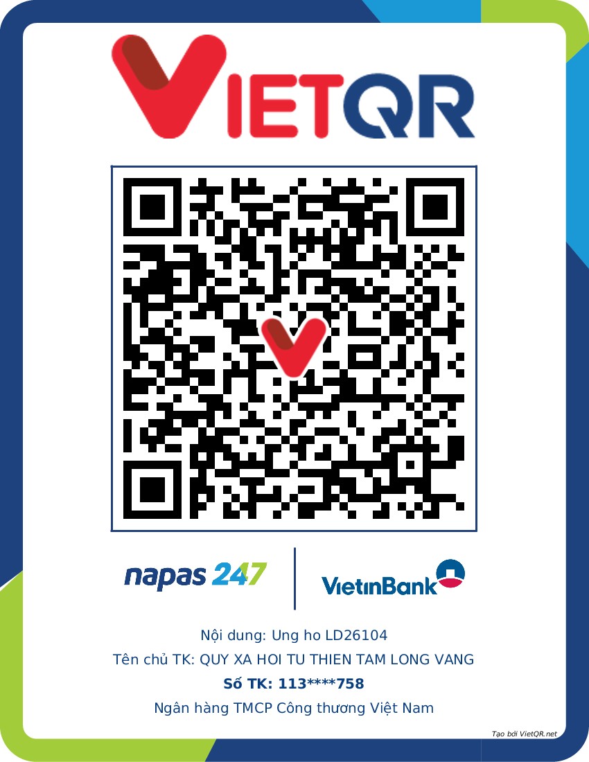 LD26104의 삶에 대한 모든 도움은 하노이 호안끼엠군 항보 51번지 황금 마음 자선 사회 기금으로 보내주십시오. 계좌 번호 (STK) 113000000758은 하노이 호안끼엠 지점 Vietinbank에 있습니다. 계좌 번호: 0021000303088 - 하노이 지점 Vietcombank에 있습니다. 계좌 번호: 12410001122556 - 호안끼엠 지점 BIDV에 있습니다.