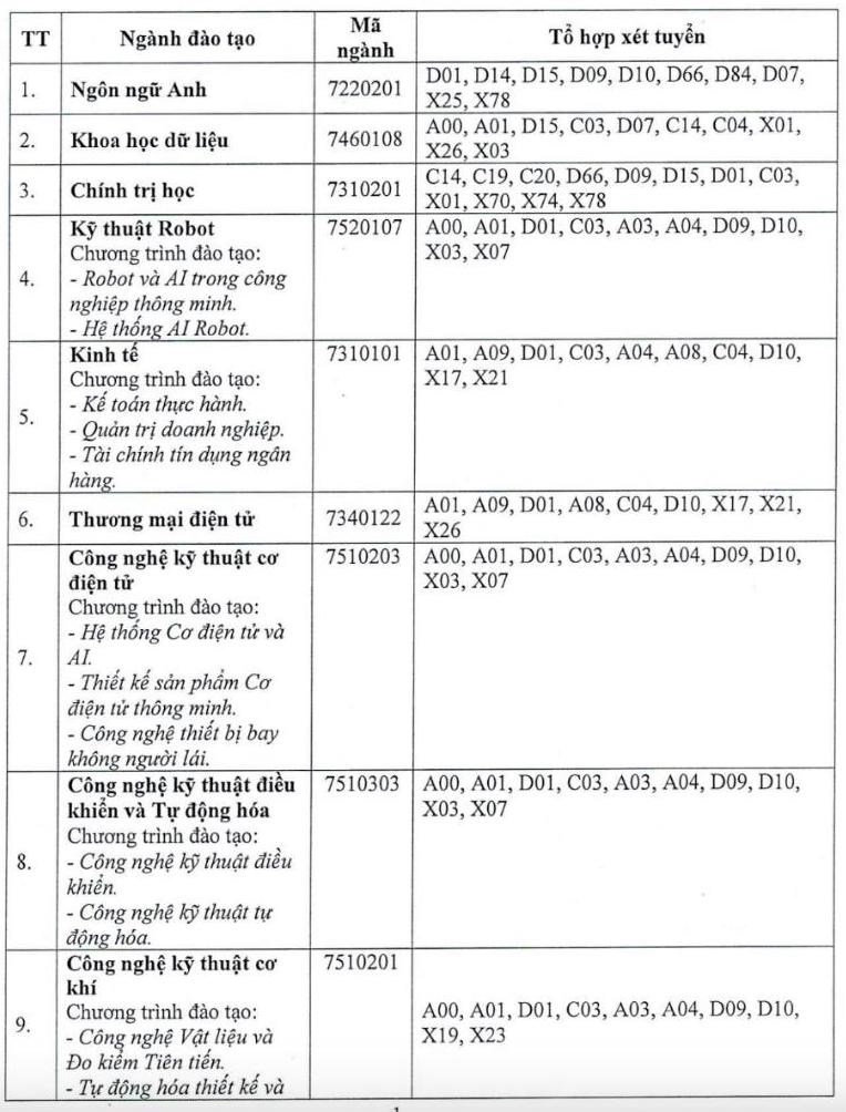 표준 프로그램의 경우 학교는 영어, 경제, 전자 상거래, 정보 기술, 정치학, 로봇 공학, 수의학, 생명 공학, 법률, 경제법(2026년에 새로 모집하는 학과)과 같은 훈련 분야를 모집할 계획입니다.
