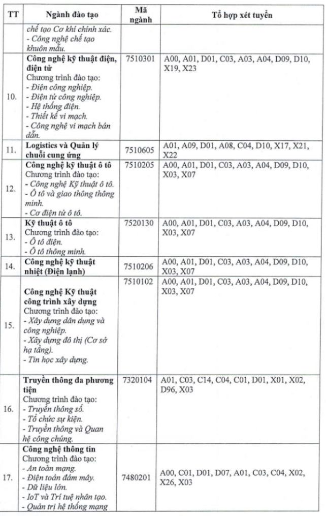 2026학년도 입시에서 빈롱 기술 교육대학교가 사용하는 입시 조합 목록은 다음과 같습니다: A00, A01, C00, C01, C02, D01, D07...