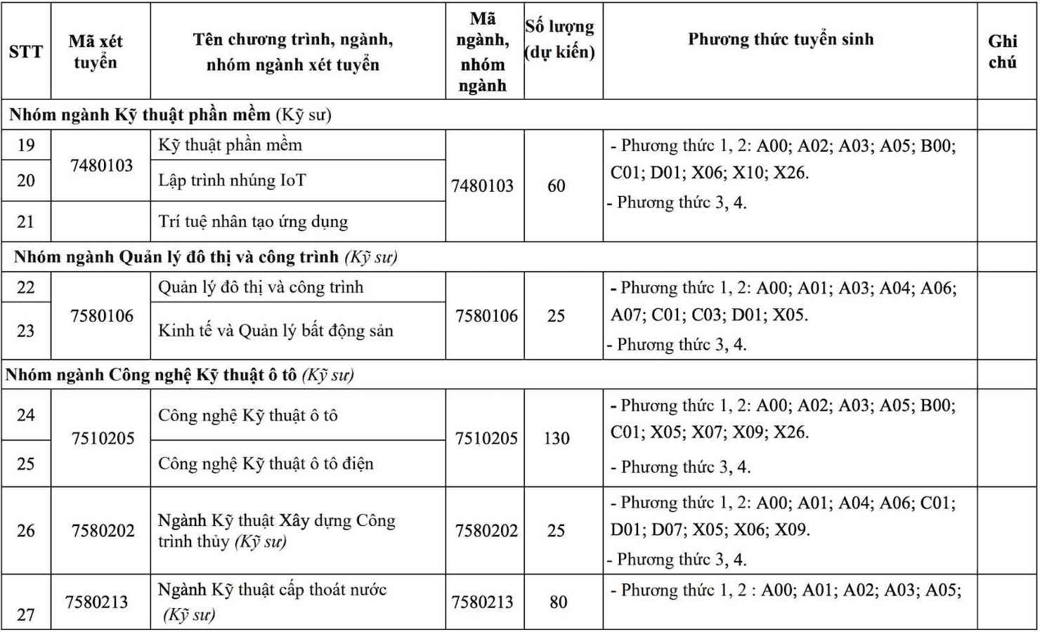 - 방법 4: 하노이 국립대학교의 역량 평가(ĐGNL) 시험 결과 또는 하노이 과학기술대학교의 사고력 평가(ĐGTD) 시험 결과에 따라 선발합니다.