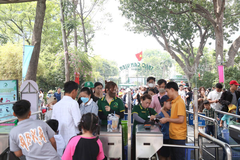 사이공 동물원에서는 어린 자녀가 있는 가정 방문객 수가 급증하고 있습니다. 그늘진 공간, 휴식 의자, 음료 판매대는 항상 사람들로 붐빕니다. 직원들은 설날 3일과 4일이 특히 날씨가 좋을 때 성수기라고 말합니다.