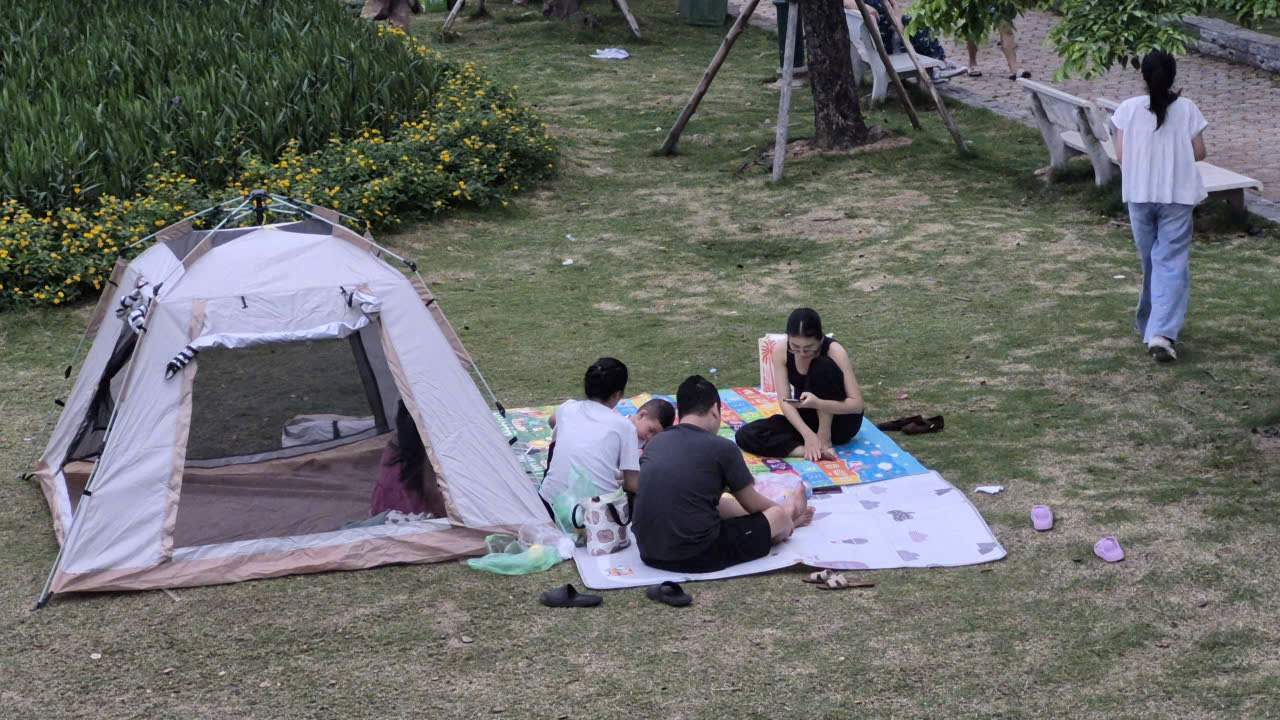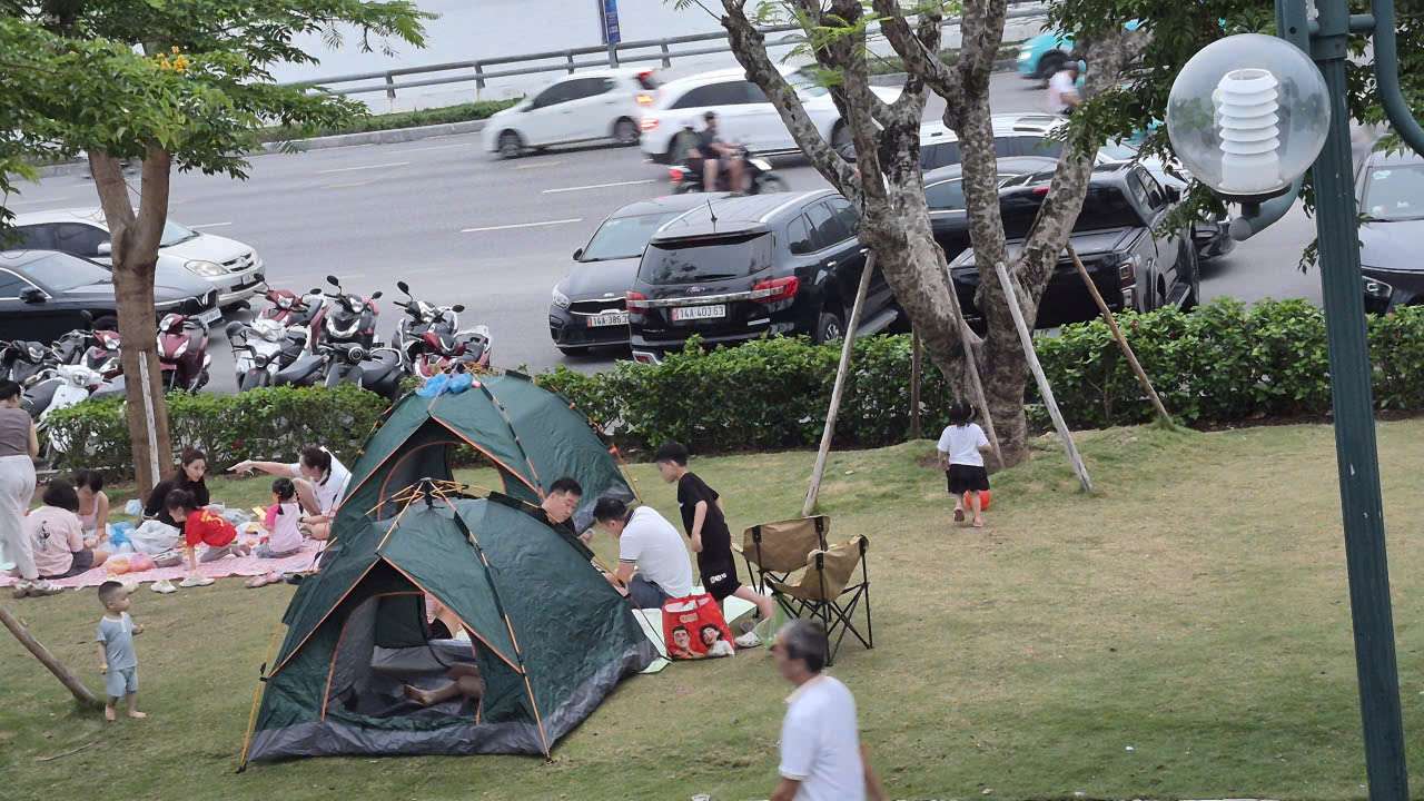 공원에서 확인한 결과, 많은 가족과 친구들이 텐트와 간식을 가져와 넓은 잔디밭, 푸른 나무 그늘 아래에서 피크닉을 열었습니다. 활기찬 분위기 속에서도 여전히 자연과 가깝고 편안한 분위기를 유지하고 있습니다.
