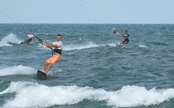 Bình Thuận - Môn thể thao cảm giác mạnh lướt ván diều đang thu hút rất đông du khách vào mỗi chiều tại biển Hàm Tiến, TP Phan Thiết.