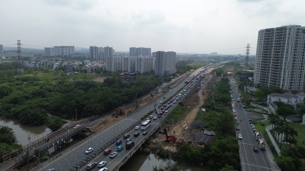 안푸 교차로 지역에서는 수천 대의 차량이 마이찌토, 르엉딘꾸아, 응우옌티딘 방향에서 호치민-롱탄-저우저이 고속도로 방향으로 몰려들었습니다. 같은 시간에 차량 수가 급증하여 고속도로 진입로 지역에 부분적인 교통 체증이 발생했습니다.