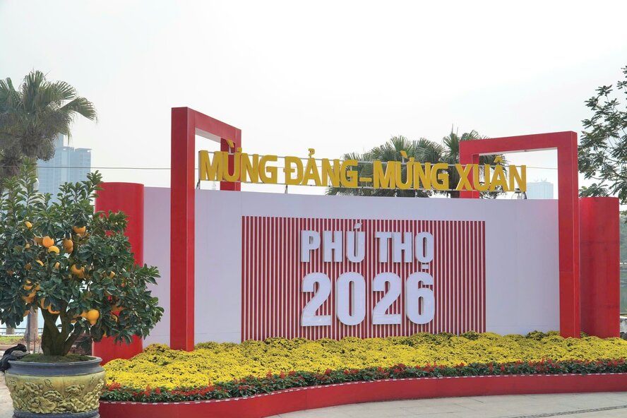 노동 신문 기자가 새해를 맞이할 준비를 하는 동안 기록한 바에 따르면, 2026년 병오년 설맞이 상징물은 훙브엉 광장(비엣찌동)에 설치되었으며, 이곳의 설맞이 장식 공간에서 활기찬 미술적 하이라이트처럼 눈에 띄는 "마도성공" 이미지를 가지고 있습니다.
