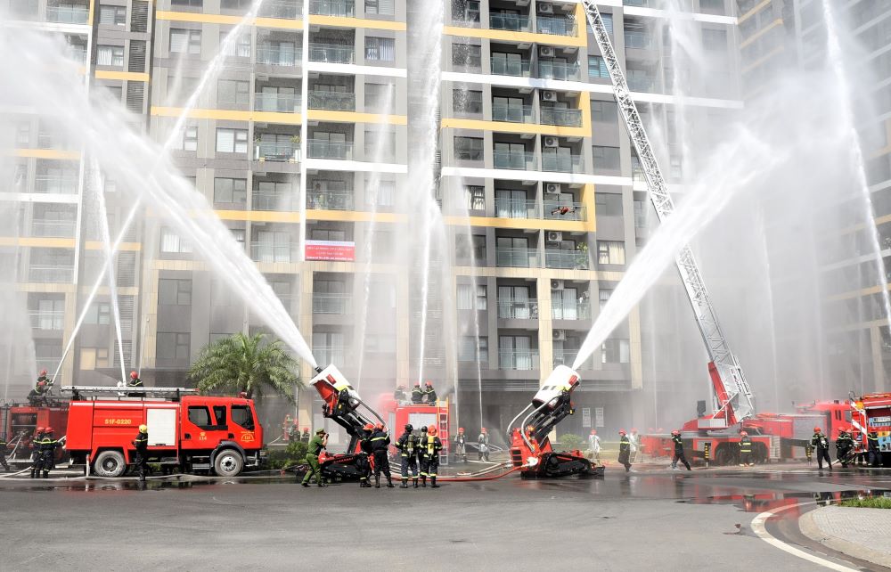 11월 14일 빈홈 그랜드 파크 프로젝트에 속한 프억티엔 주거 지역 및 공원에서 호치민시 공안은 도시 관리위원회와 협력하여 2025년 최대 규모의 화재 진압 구조 계획인 화재 진압 구조 작전 2025년 최대 규모 구조 작전 도시 동부 현대 도시의 대표적인 고층 건물인 GH6 빌라에서 화재 진압 훈련을 조직했습니다.