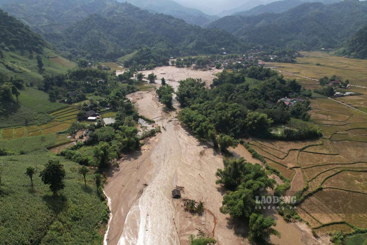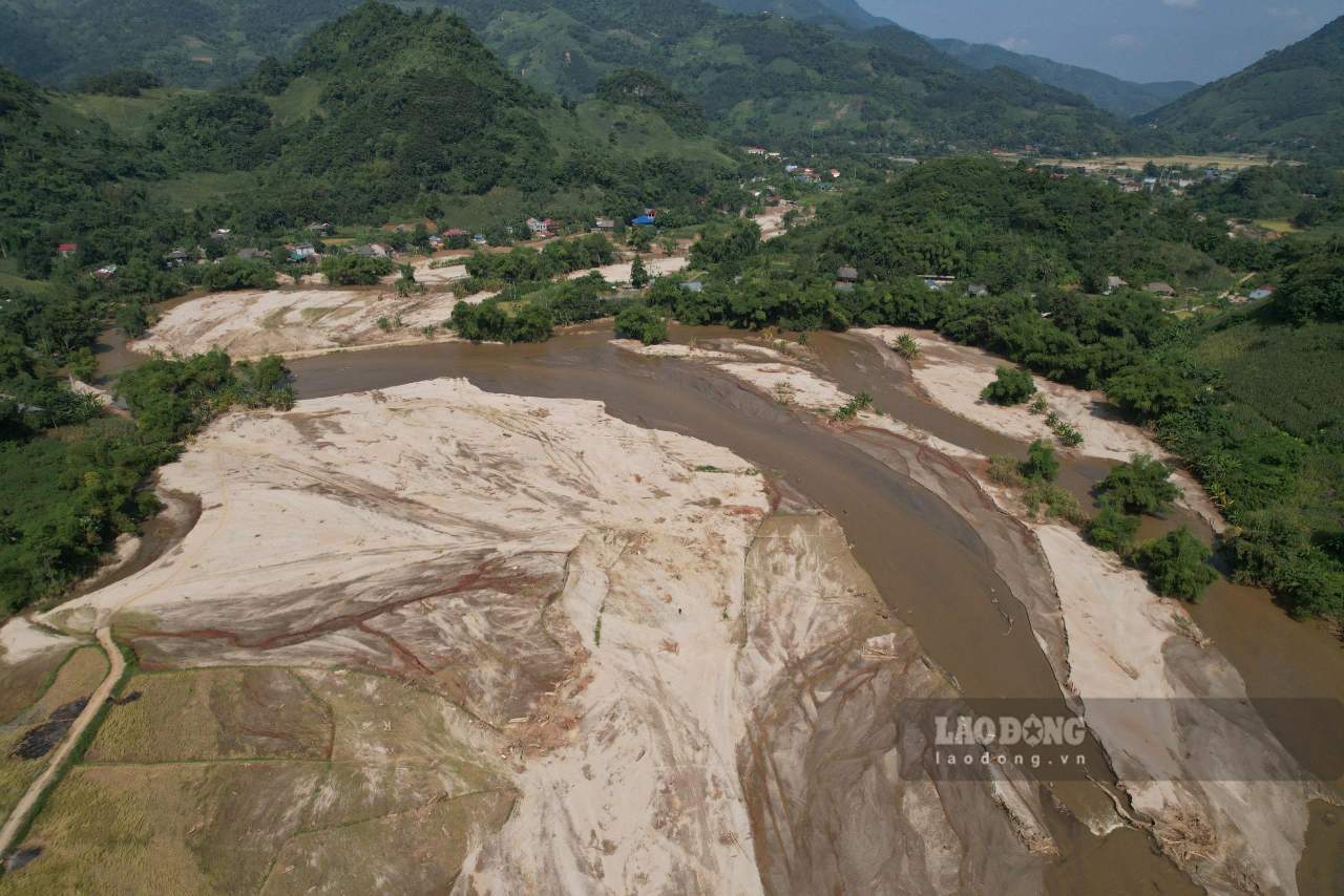 앞서 제10호 태풍으로 인해 홍수가 랑 마을로 쏟아져 많은 집들이 깊이 침수되었습니다. 홍수가 빠지자 두꺼운 황금빛 모래층이 집과 논밭을 덮었고, 그 양은 약 100,000m3 이상이며, 추정 가치는 300억~350억 동입니다.