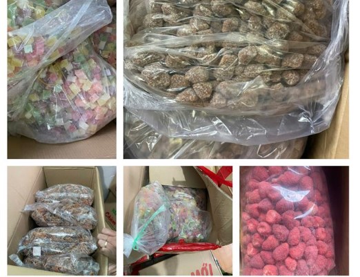 검문 과정에서 당국은 출처가 불분명한 재료와 첨가물을 사용한 대량의 과자를 압수한 것을 발견했습니다.