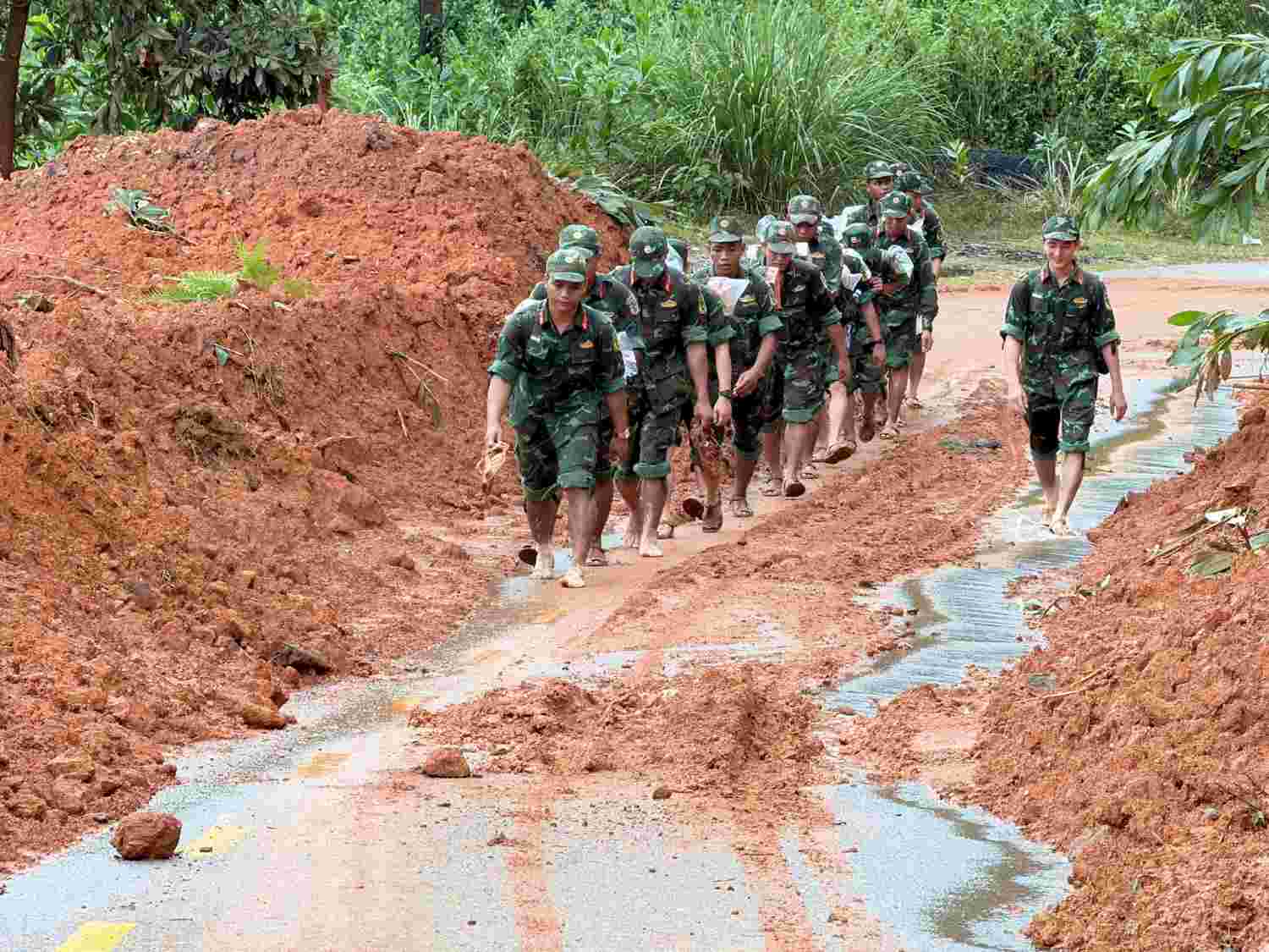 험준한 지형과 끊임없이 변동하는 날씨로 인해 구조 작업에 많은 어려움이 있었습니다. 많은 빈 지점에서 부대는 급류를 건너야 했고 빈은 물바다 속에서 고립된 가구에 접근하기 위해 로프나 보트를 사용했습니다. 그럼에도 불구하고 빈은 책임감과 강인함의 정신으로 각 간부 빈 전사는 여전히 사람들을 보호하기 위해 어려움을 극복하기 위해 노력했습니다.