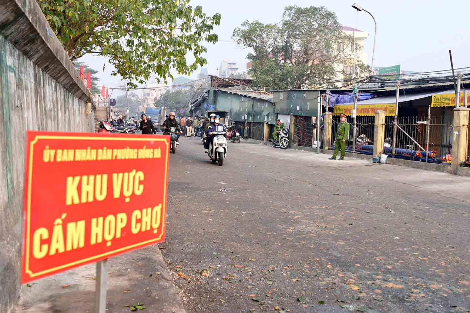 하노이 - 홍하동은 도시 질서를 회복하고 롱비엔 시장 근처 거리의 노점 시장을 단속하기 위해 동시에 출동했습니다.