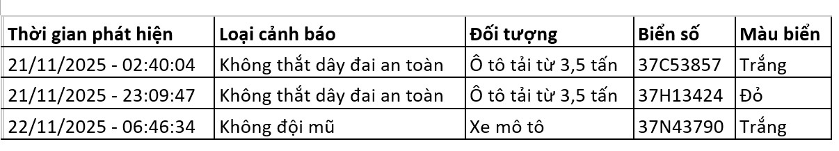 교통 경찰국은 2025년 11월 21일 12시부터 2020년 11월 22일 12시까지 AI 카메라 영상을 분석한 결과 공안이 많은 위반 사례를 발견했다고 밝혔습니다. 이 중에는 다음과 같은 응에안 번호판 차량이 있습니다.