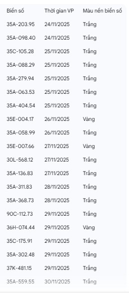 Ninh Binh 경찰은 11월 24일부터 11월 30일까지 적색 신호 위반으로 많은 차주에게 과태료를 부과했다고 발표했습니다. 자세한 목록은 다음과 같습니다.