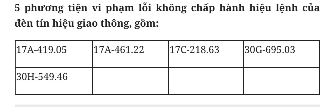 박닌성 공안 교통 경찰국은 또한 1월 25일부터 2월 1일까지 카메라 시스템을 통해 기능 부대가 적색 신호 위반으로 많은 차주에게 벌금을 부과했다고 밝혔습니다. 자세한 목록은 다음과 같습니다.