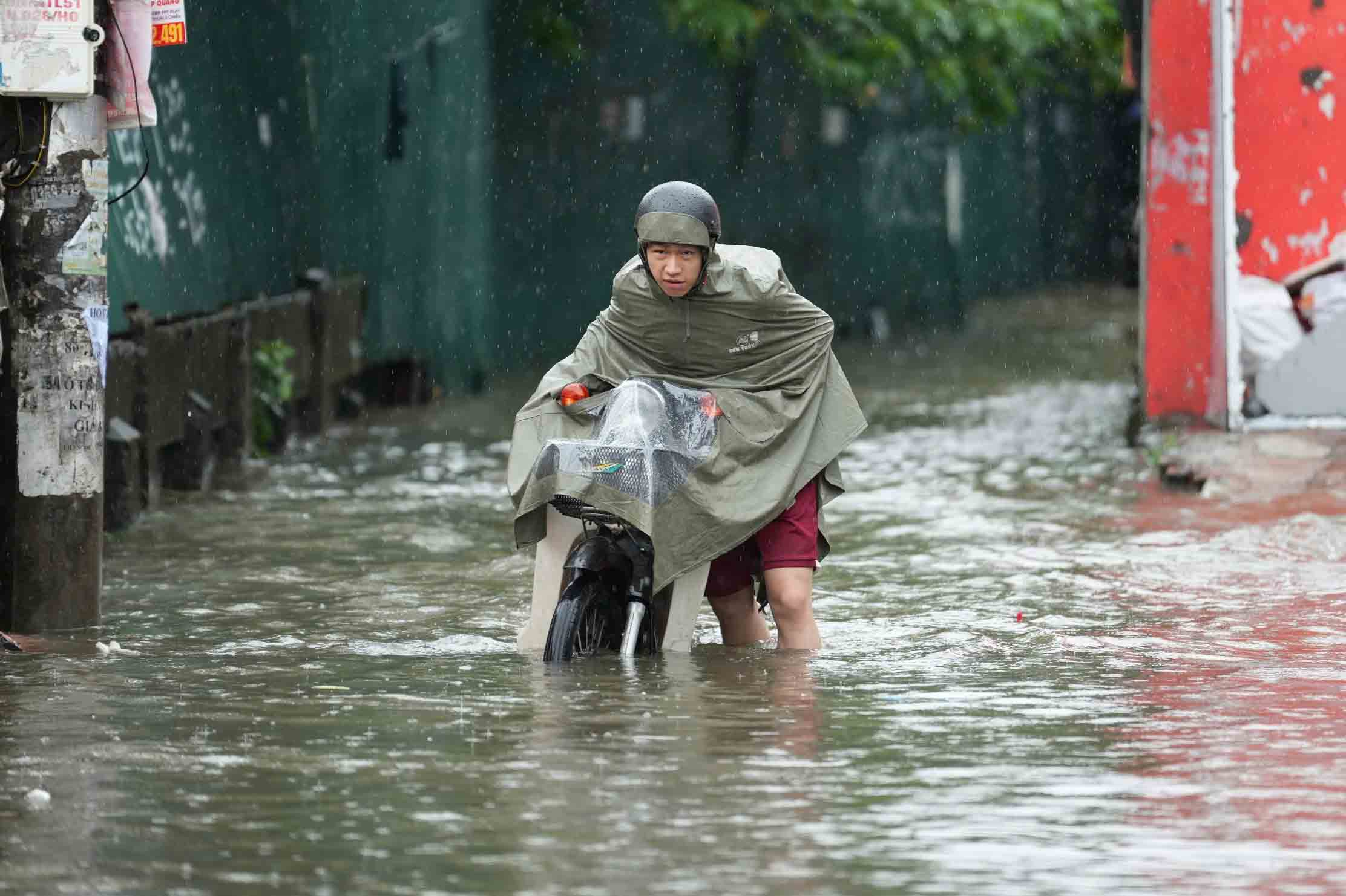 8월 26일 아침 하노이의 많은 도로가 침수되어 교통이 마비되었고 오토바이와 자동차가 잇따라 시동이 꺼졌습니다. 자동차 수리점이 손님으로 가득 찼습니다.